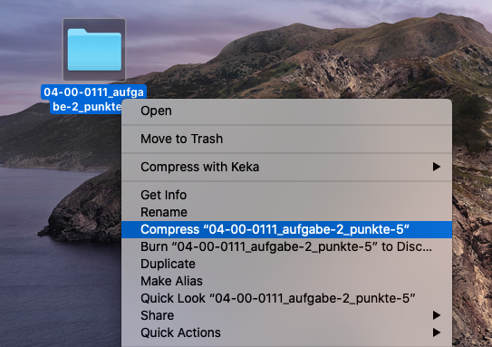 Erstellung eines Aufgabenarchivs mittels macOS-Hausmittel über das Kontextmenü des Aufgabenordners.