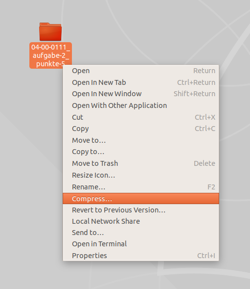 Erstellung eines Aufgabenarchivs mittels Ubuntu-Hausmittel über das Kontextmenü des Aufgabenordners.