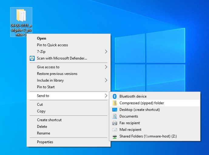 Erstellung eines Aufgabenarchivs mittels Windows-Hausmittel über das Kontextmenü des Aufgabenordners.